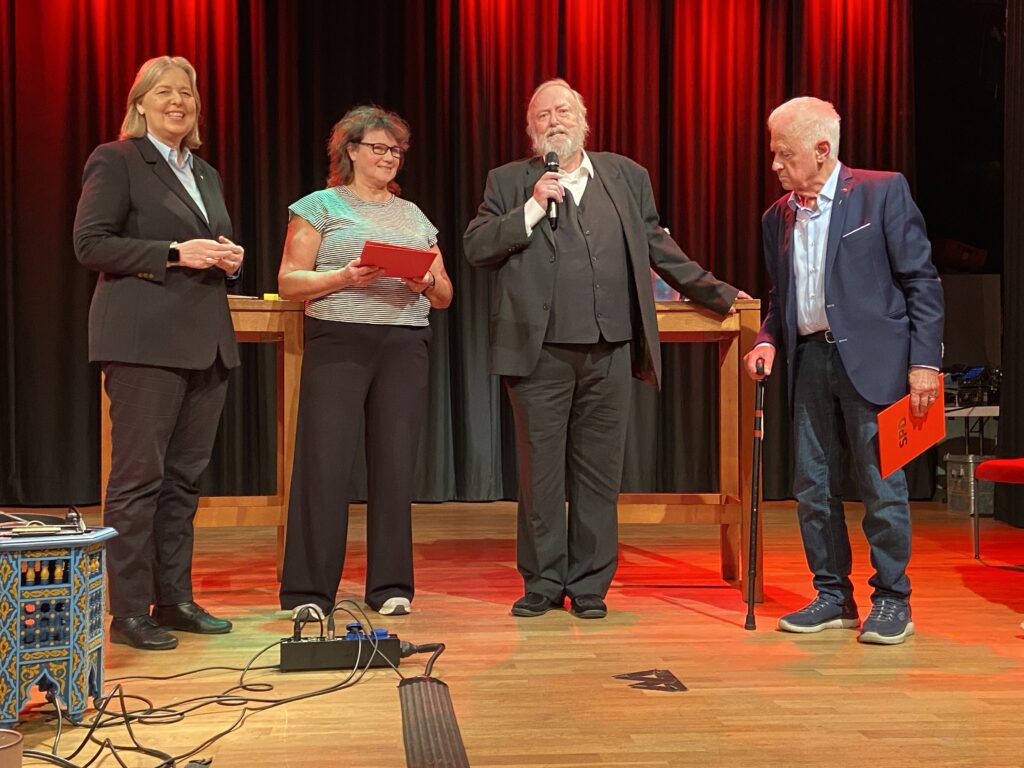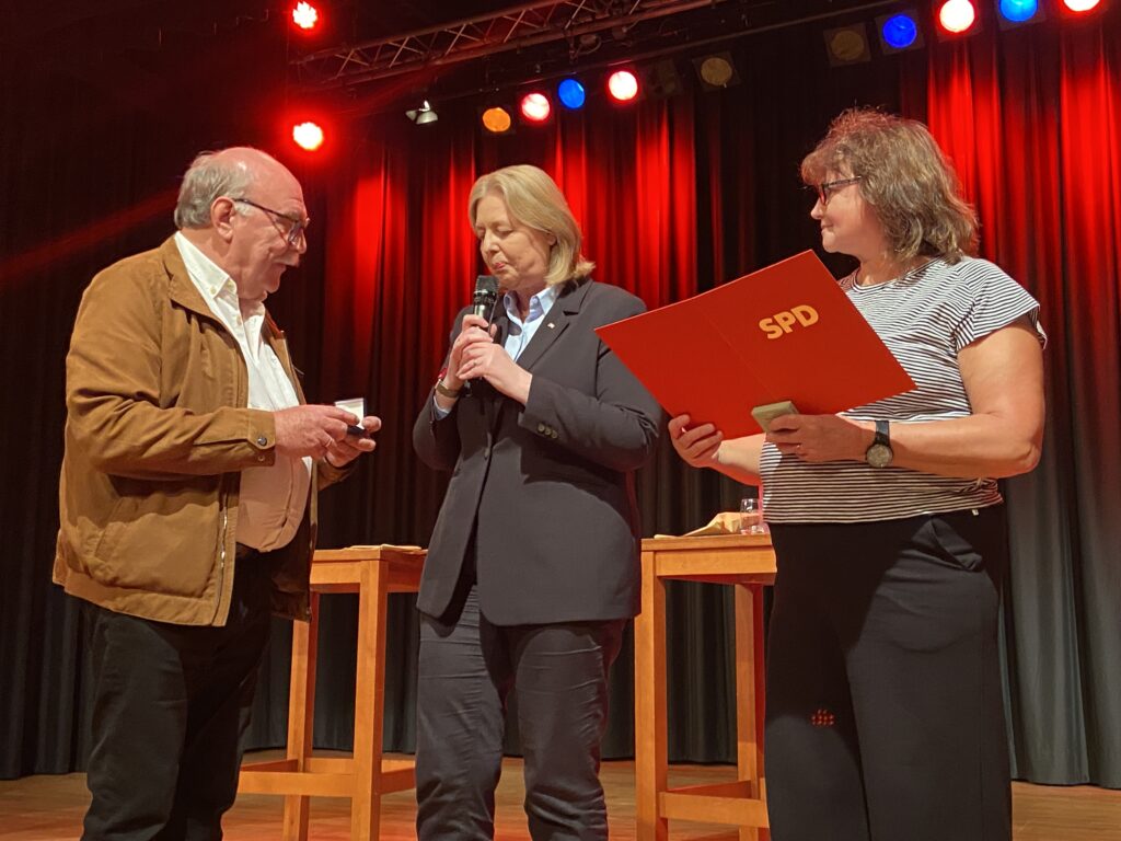 Der Herbstempfang unseres Ortsverein unter dem Vorsitz von Rita Maria Rzyski fand mit 100 Teilnehmern/-innen viel Zuspruch. Mit unserer Ministerin und Parteivorsitzenden Bärbel Bas bekamen die Ehrungen für 3 langjährige Mitgliedschaften, Ratsarbeit und besondere Verdienste einen einen besonderen Rahmen. Bärbel Bas hat das Ehrenamt und damit auch unser aller Engagement gewürdigt. Besonders langjährige Mitglieder waren mit 65 Mitgliedsjahren Georg Seidel und mit 55 Jahren Simon Aarse . Ein Danke ging an Ursula Bochnig und Claudia Wilps für die Arbeit im Rat. Erstmalig wurde die Willy-Brandt-Medaille vergeben: an Günter Teller und Heinz-Gerd Franken. Von allgemeinem Interesse waren die Ausführungen von Bärbel Bas zur Bürgergeldreform, Kampf gegen Sozialbetrug, sichere Renten und Tariftreuegesetz. Die SPD steht weiterhin für eine Solidarität mit den Menschen, die Unterstützung benötigen. Ein Mißbrauch bei staatlichen Leistungen und mangelnde Anstrengung kann mit Blick auf die Allgemeinheit aber nicht akzeptiert werden. Die SPD hat sich für massive Investitionen über das Sondervermögen eingesetzt. Hoffen wir, das unsere Landesregierung die Mittel auch überwiegend an die Kommunen weiterleiten.